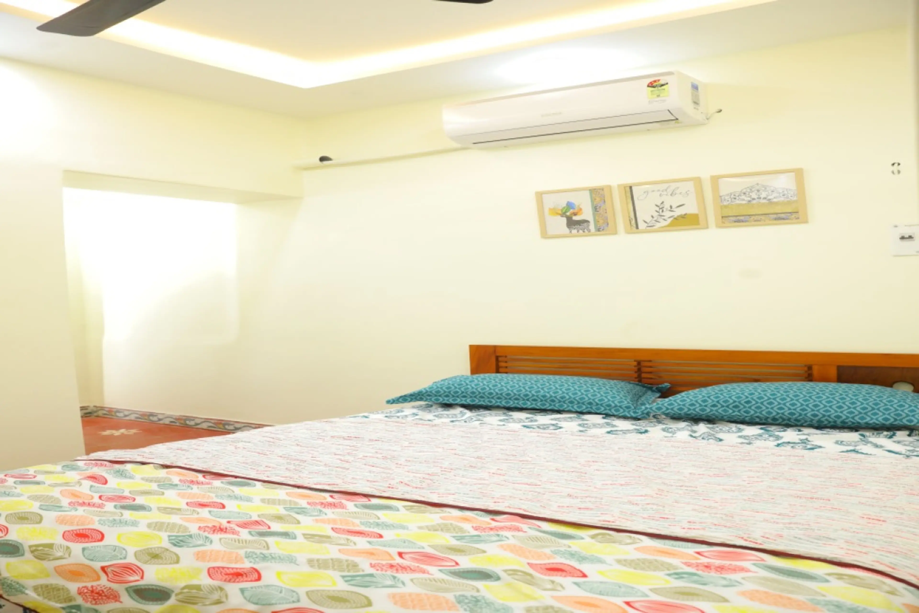 Negative: The cutlery was not clean.... the beddings smell like rotten fish.... and the window lock in one of the rooms was broken... we had experienced a complete lockdown, the light and fans work however the induction stove, ro and fridge doesnt work due to shut-down .. as none of.the plugpoint was connected to invertor...